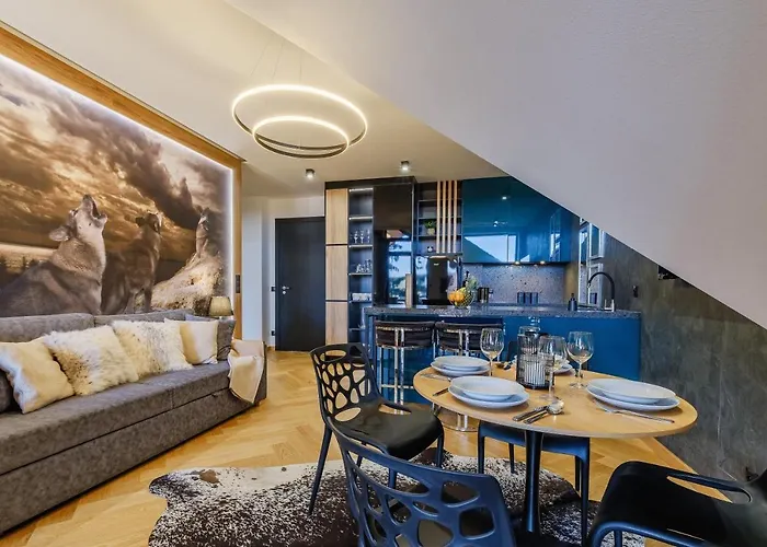 Apartament Wataha - Stylowy Apartament Z Bezplatnym Jacuzzi, Sauna Oraz Podziemnym Parkingiem W Cenie Zakopane accueillant est situé à moins de 20 minutes à pied de la Remontée mécanique de Nosal et offre le Wi-Fi pour les affaires ou les loisirs. Le Wielka Krokiew se trouve à 2 km du domicile de 50 m².
